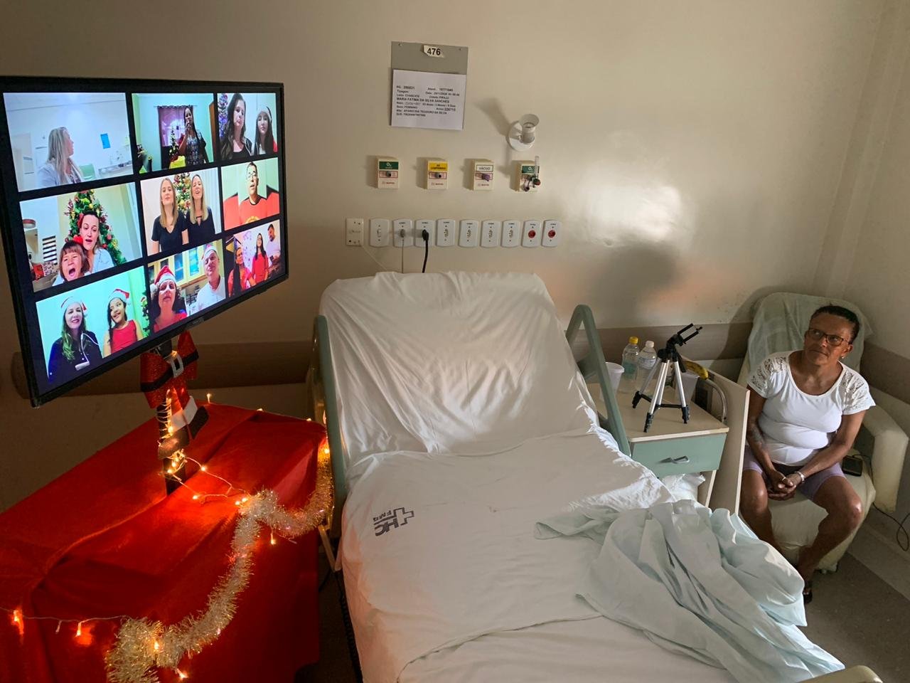 Neste sábado, 5 de dezembro, pacientes internados no Hospital das Clínicas da Faculdade de Medicina de Botucatu (HCFMB), no Hospital Estadual Botucatu (HEBo) e no Serviço de Atenção e Referência em Álcool e Drogas (SARAD) puderam participar de um momento especial: acompanhar, de seus leitos e quartos, uma edição do Ilumina HC voltada exclusivamente para eles.