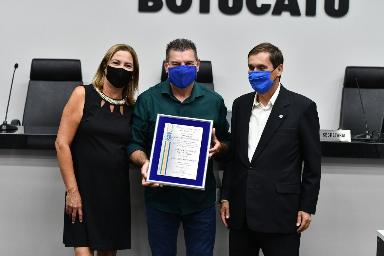 O fotógrafo Marcelino Dias de Almeida recebeu nesta terça-feira, 8 de dezembro, o título de Botucatuense Emérito. Autoria da homenagem foi do vereador Carlos Trigo (PDT). Marcelino iniciou sua carreira aos 13 anos, na antiga Loja Foto Novaes e tornou-se profissional quando fotografou seu primeiro casamento, aos 15 anos de idade. Trabalhou também na extinta foto Botucatu, Jet color e Foto Rocha e por seis anos foi proprietário do Foto Dias na cidade de Bofete, terra natal de sua mãe.