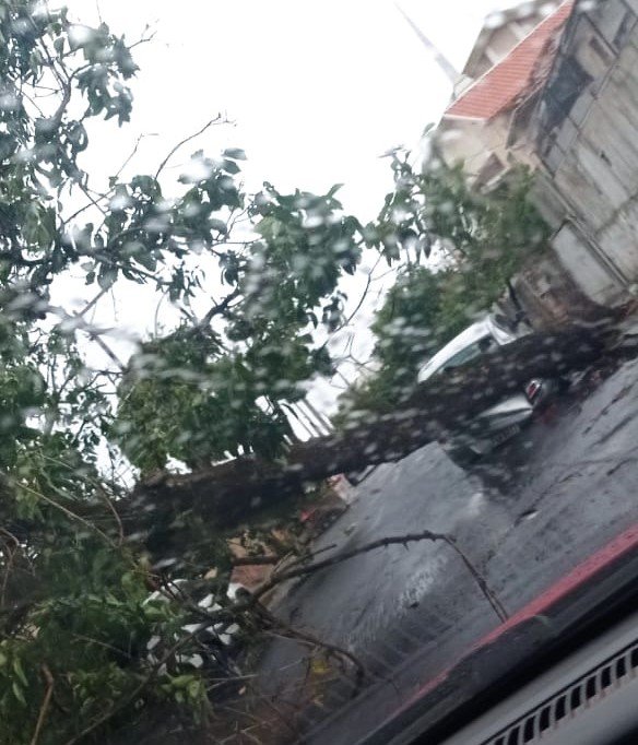Árvore caiu devido aos fortes ventos durante a chuva