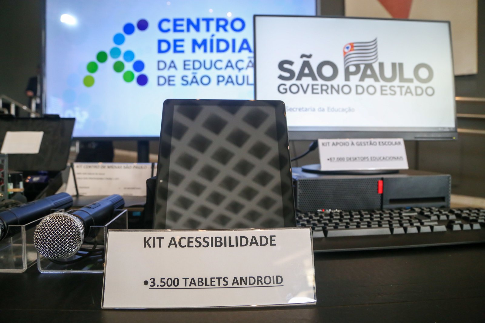 No início do ano letivo de 2021, as unidades, Diretorias de Ensino e órgãos administrativos que integram a Secretaria da Educação vão receber 269 mil notebooks, 87 mil desktops, 61 mil kits do Centro de Mídias (kit com TV, suporte, estabilizador etc), 5,2 mil carrinhos tecnológicos (plataforma de carregamento móvel), 65 mil kits wi-fi com roteador e 3,5 mil tablets educacionais para escolas com alunos portadores de necessidades especiais.