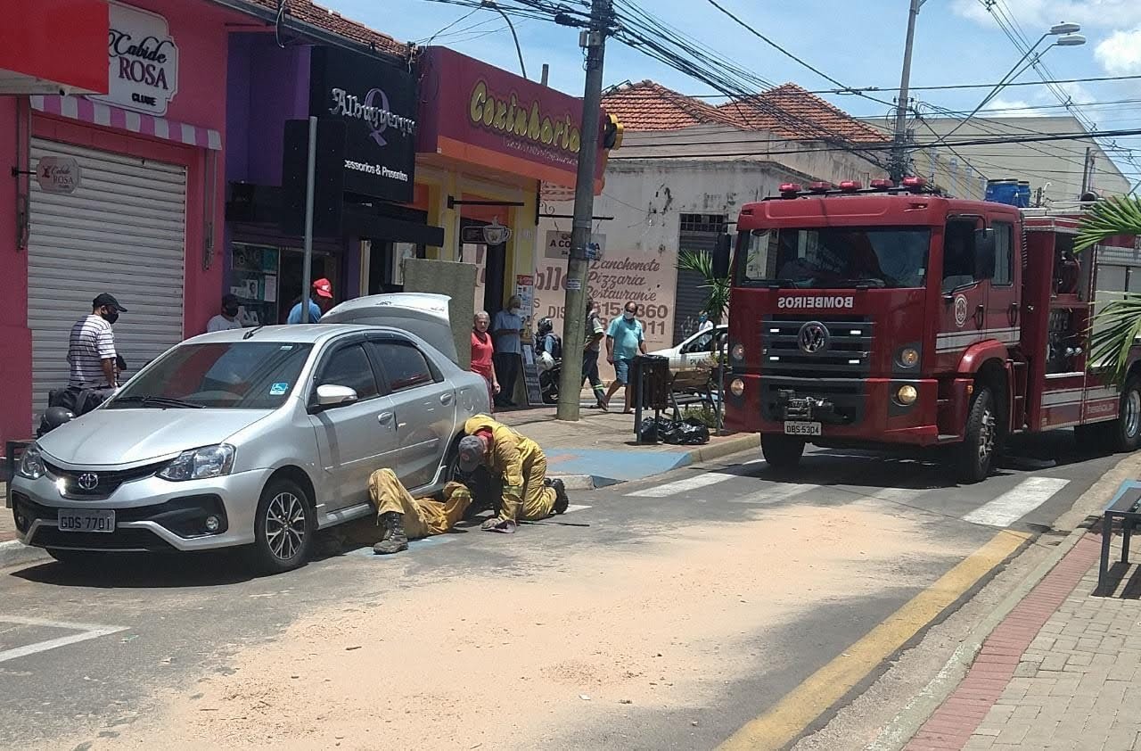 Um dos veículos foi parar embaixo de um Toyota Etios que estava estacionado. O Corpo de Bombeiros foi acionado para socorrer as vítimas.