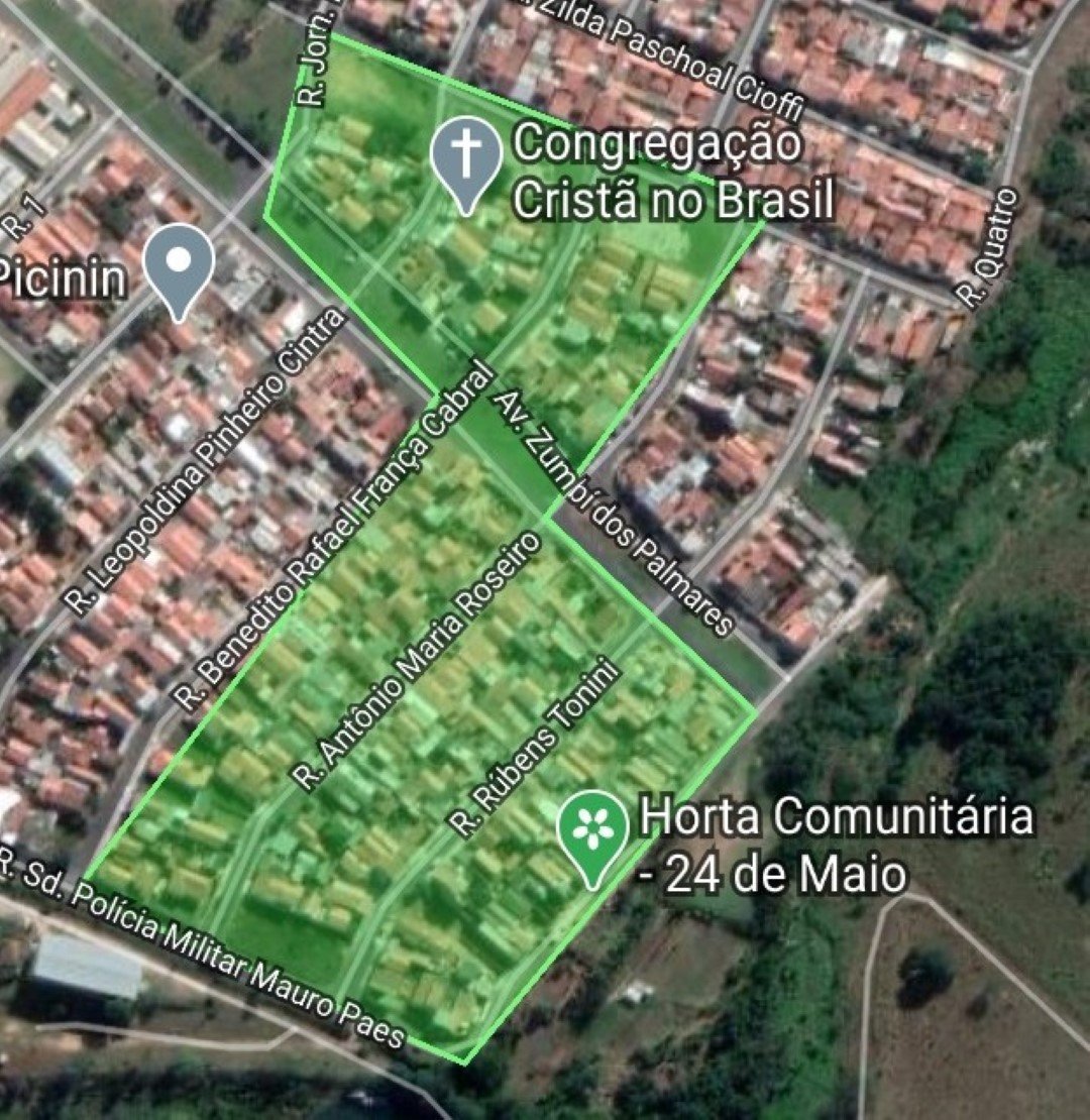 A Vigilância Ambiental em Saúde realizará na próxima segunda e terça-feira, 22 e 23, a nebulização (aplicação de inseticida) no Parque Residencial 24 de Maio. A ação ocorrerá por conta de um caso suspeito de dengue na região (em destaque na imagem).