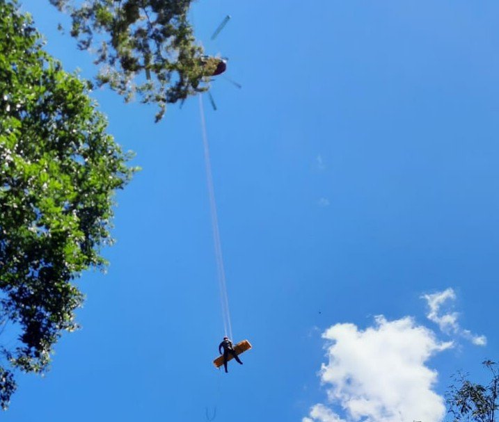 Botucatu: mulher de 61 anos é resgatada pelo Helicóptero Águia após ferir-se em cachoeira