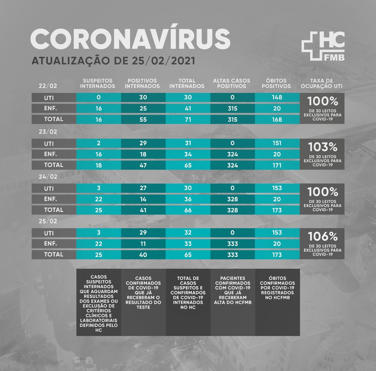 O número de pacientes internados é maior do que o número de leitos disponíveis para covid-19 por seguirmos cumprindo o nosso compromisso em promover assistência à todos os pacientes que precisam do HC neste momento., salienta o hospital, por meio de nota oficial.