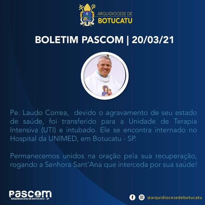 O padre Laudo Corrêa aponta um agravamento de seu estado de saúde, precisando ser transferido para a Unidade de Terapia Intensiva (UTI) do hospital onde está em Botucatu.