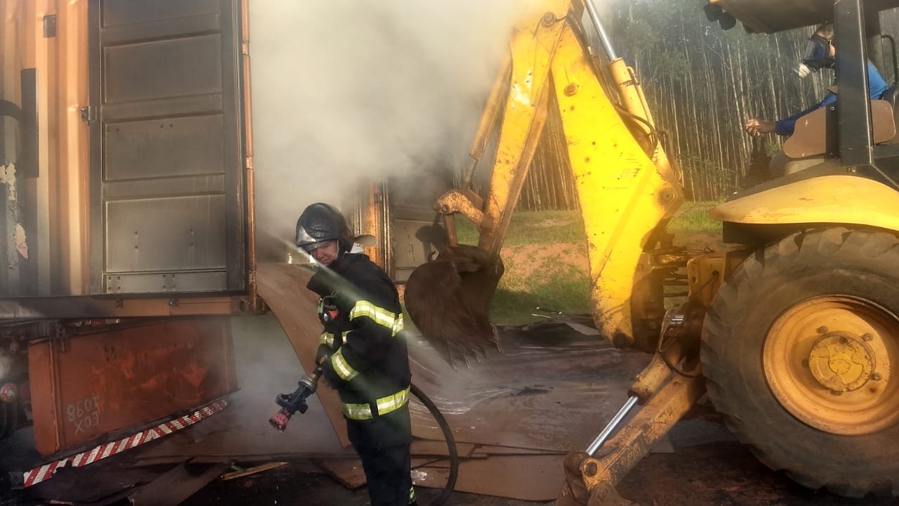 Botucatu: incêndio destrói parte de caminhão carregado com chapas de madeira