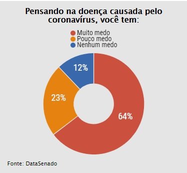 Segundo os resultados da pesquisa, 64% dos brasileiros afirmam sentir muito medo do coronavírus. Além disso, nota-se que mulheres reportam “muito medo” com maior frequência do que homens — bem como desempregados que estão à procura de trabalho, em relação à parcela da população que está empregada.