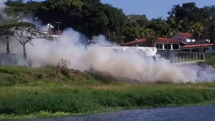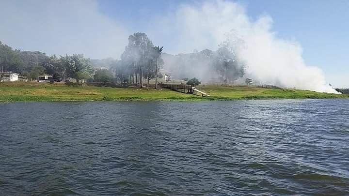 Moradores e frequentadores do Rio Bonito Campo e Náutica depararam-se com densa fumaça provocada por queimada provocada na orla do Rio Tietê.
