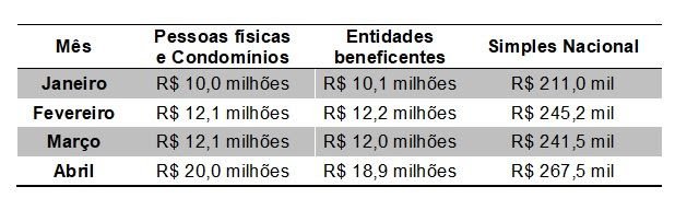 Deste montante, R$ 20 milhões foram destinados a pessoas físicas. Já as instituições filantrópicas têm à disposição R$ 18,9 milhões para utilização em seus projetos.