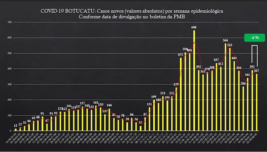Os casos de Covid-19 tiveram queda de 6% em Botucatu nos últimos sete dias, conforme boletim apresentado neste sábado, 8 de maio, pelo secretário municipal de Saúde, André Spadaro. A análise compreende  as  chamadas “semanas epidemiológicas”, sendo a terceira mensuração após o início da Fase de Transição do Plano São Paulo, que flexibilizou atividades econômicas e de circulação de pessoas.