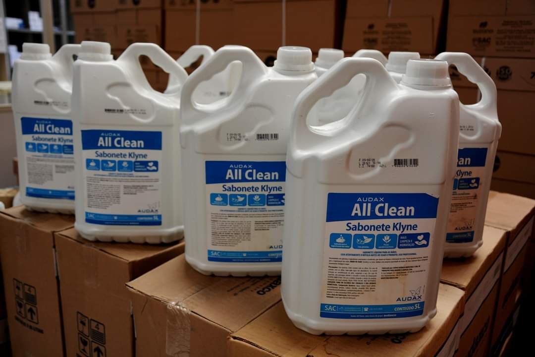 Hospital das Clínicas recebe doação de 240 galões de sabonete líquido