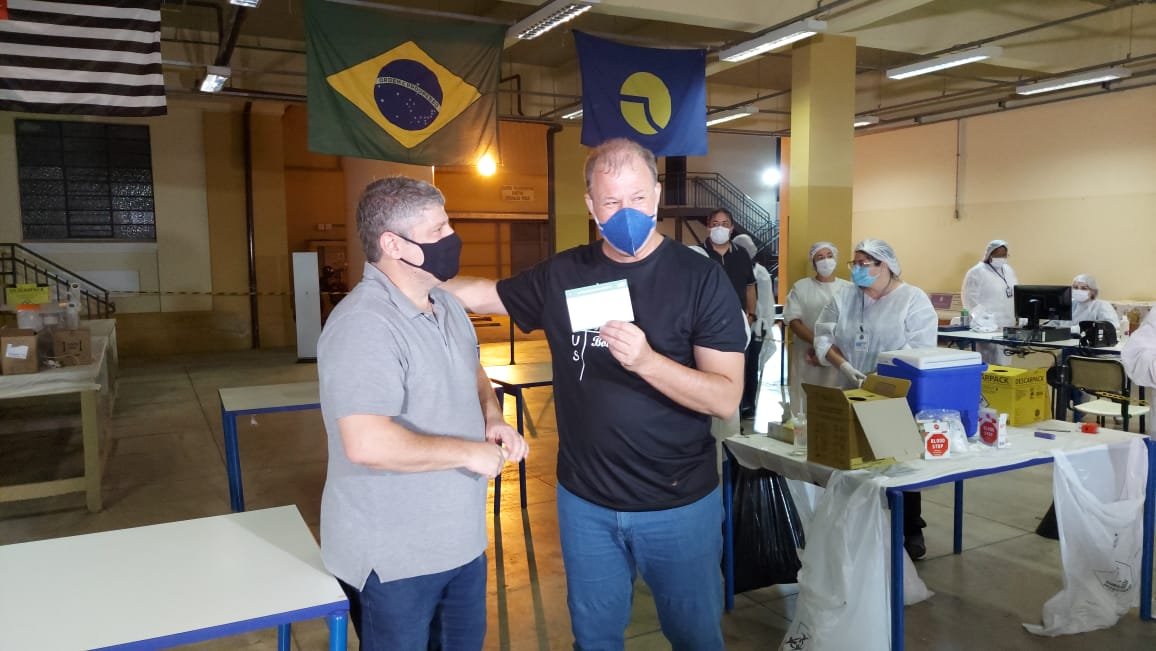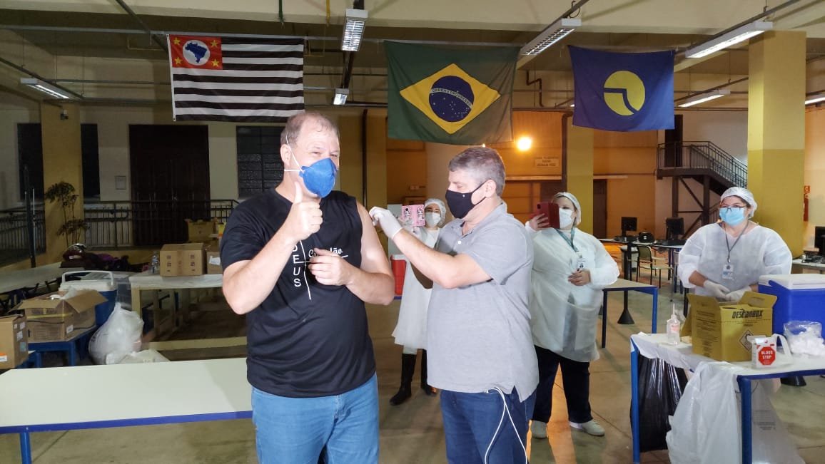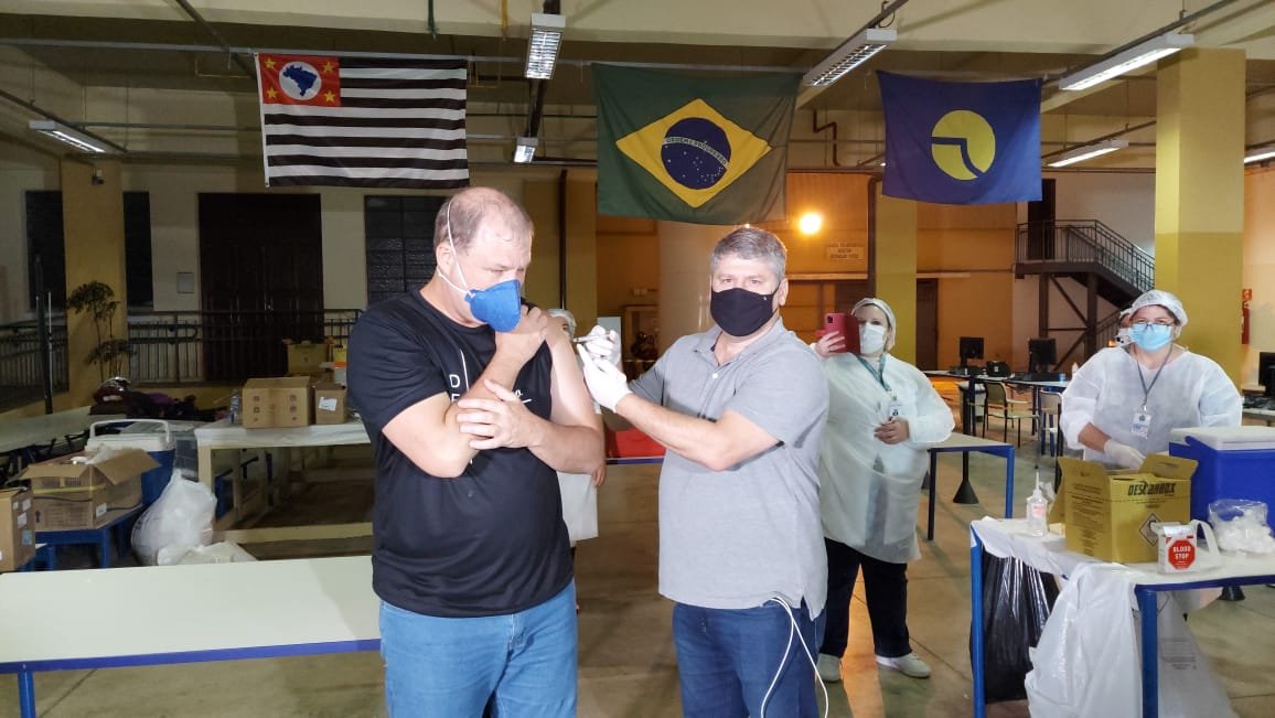 Após às 18 horas, com o encerramento da Vacinação em massa contra a Covid-19, neste domingo, 16, em Botucatu, chegou a vez do Prefeito Mário Pardini ser imunizado.