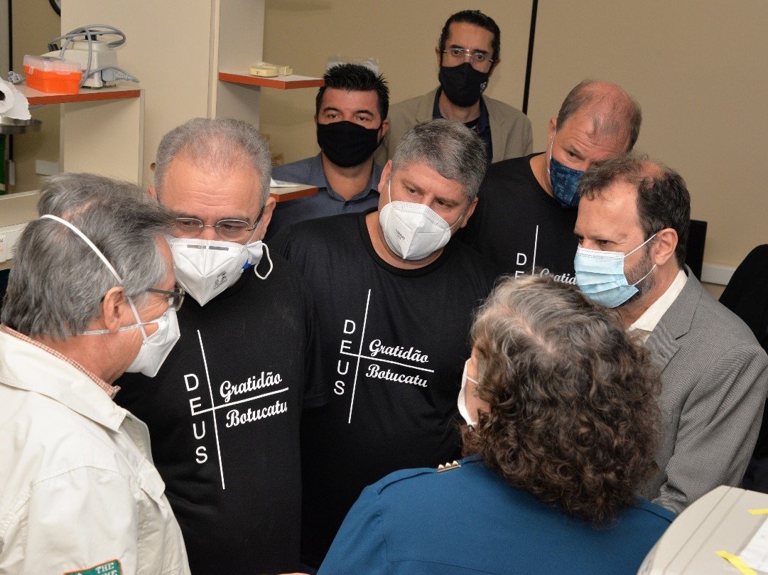 O Ministro conheceu a estrutura do Laboratório acompanhado pelo Superintendente do HCFMB, Dr. André Balbi; pelo Chefe de Gabinete do HCFMB, Dr. José Carlos Souza Trindade Filho; pelo Reitor da Unesp, Pasqual Barretti, pela Diretora da Faculdade de Medicina de Botucatu (FMB), Maria Cristina Pereira Lima e pela Coordenadora do LBM, Rejane Grotto. A comitiva também contou com a presença do Prefeito de Botucatu Mário Pardini, do Secretário da Saúde André Spadaro, representantes da Fiocruz, Oxford, AstraZeneca e Embaixada do Reino Unido no Brasil, além de demais autoridades.