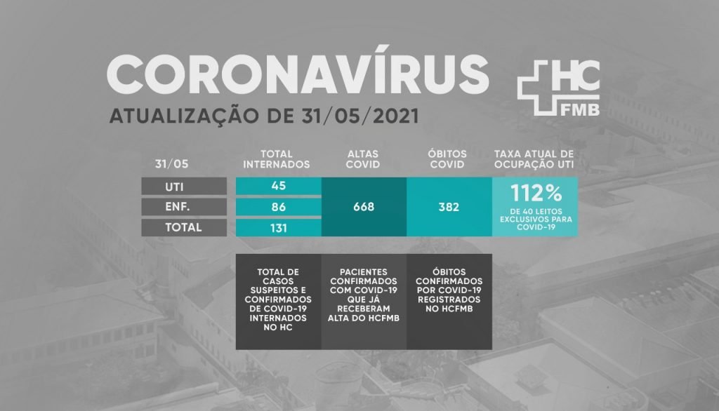 O HCFMB possui 131 pessoas internadas para tratamento do novo coronavírus