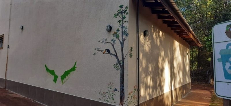 O Centro Receptivo do Parque Natural Municipal Cachoeira da Marta, em Botucatu, recebeu um presente em alusão ao “Junho Verde”. A artista plástica Ana Cláudia Fernandes Cassetari pintou as paredes do Centro com lindas imagens de pássaros e vegetação.