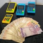 Foram apreendidos o veículo, quatro máquinas de cartões, dois aparelhos celulares e a quantia de R$ 1.730.