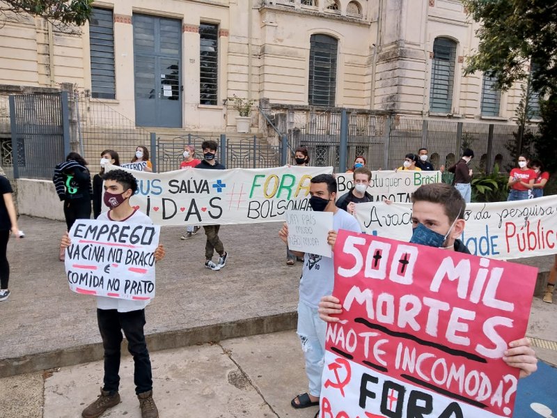 Por fim, os manifestantes fizeram suas reivindicações em frente à Escola Estadual Cardoso de Almeida, EECA. Durante o trajeto, motoristas manifestaram apoio ao ato buzinando.