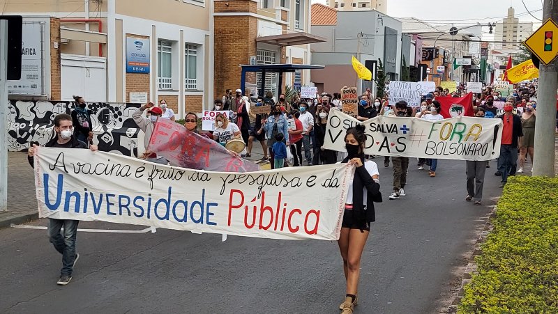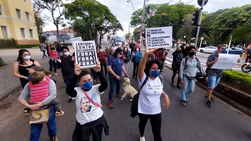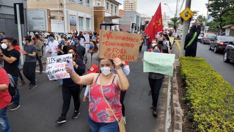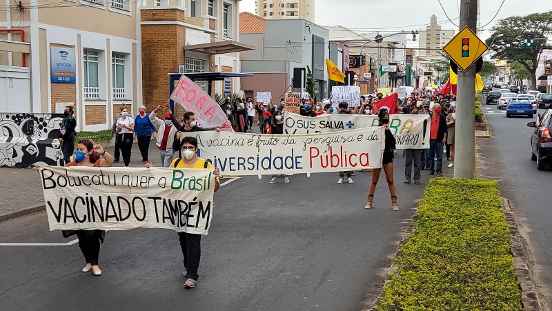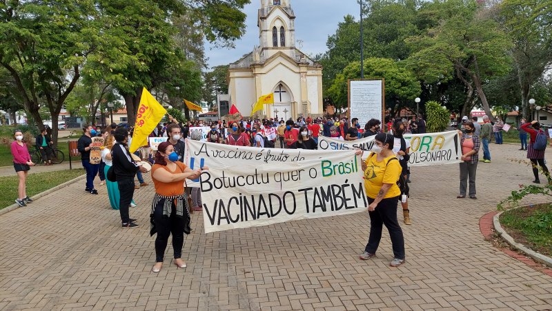 Centenas de botucatuenses fizeram na tarde deste sábado, 19 de junho, ato contra o Governo do presidente Jair Bolsonaro (sem partido) e pedindo aceleração na aplicação de vacinas contra a Covid-19 e maior empenho no combate à pandemia.