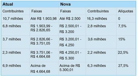 Governo propõe que faixa de isenção do IR seja de R$ 2,5 mil