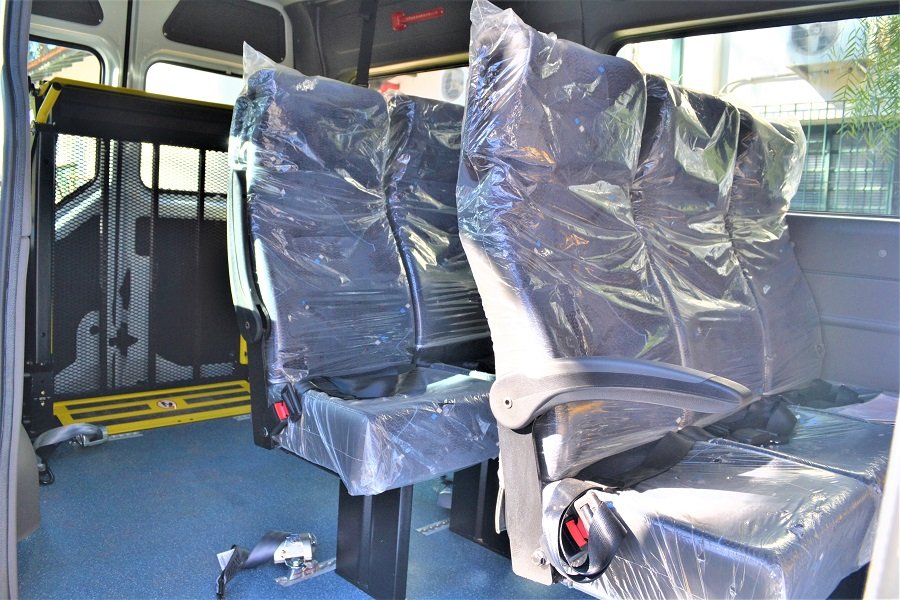 O dispositivo permite que cadeirantes sejam elevados pela porta traseira. Uma vez no interior da Van, um sistema de travas é acionado para garantir a segurança do passageiro.