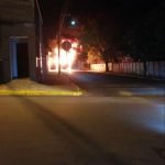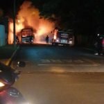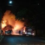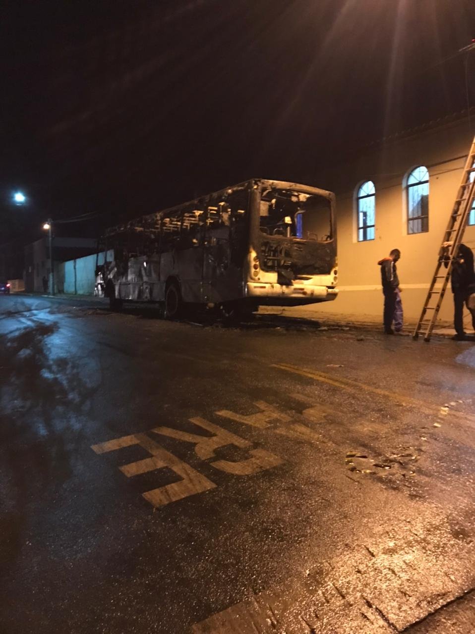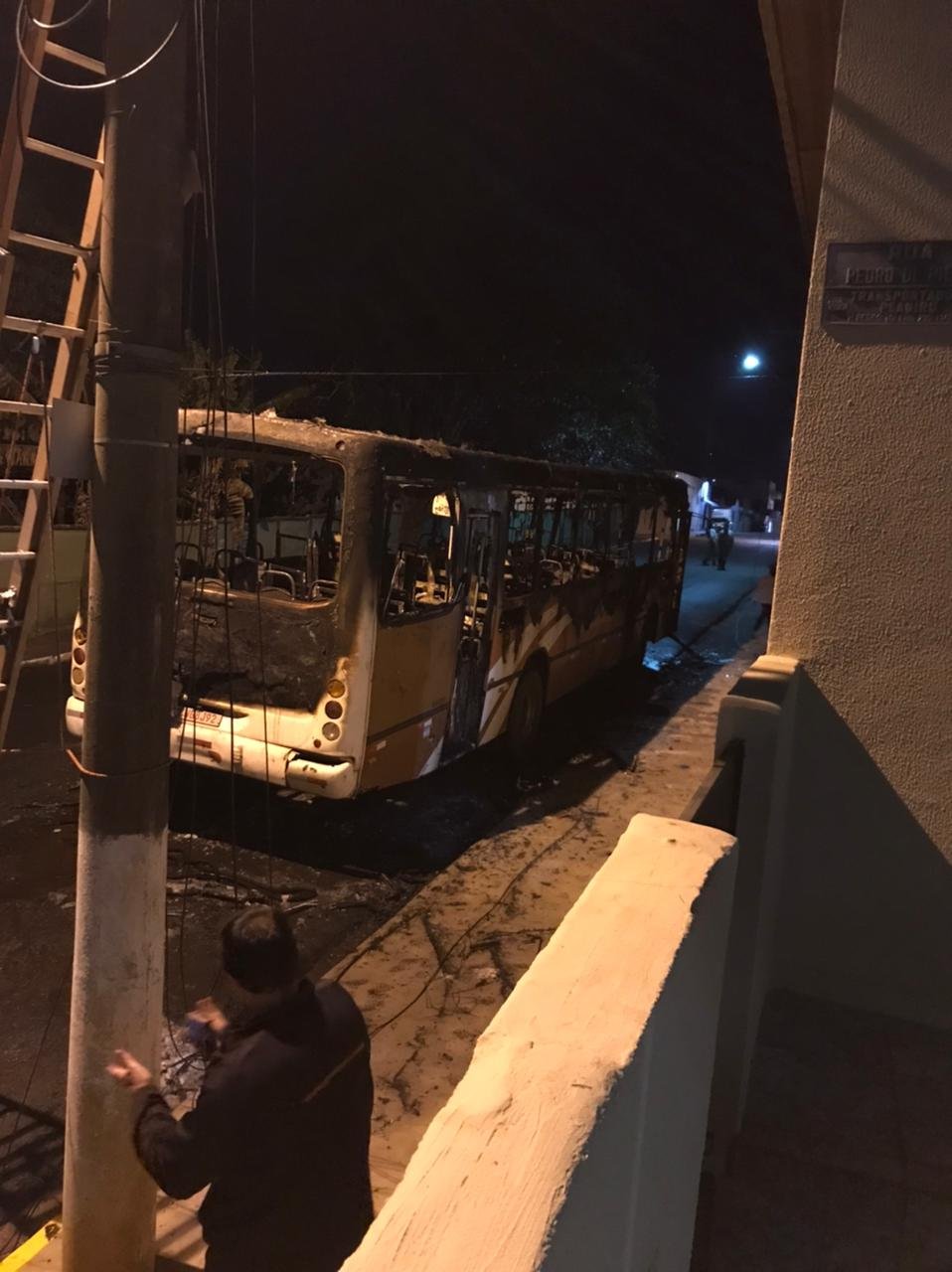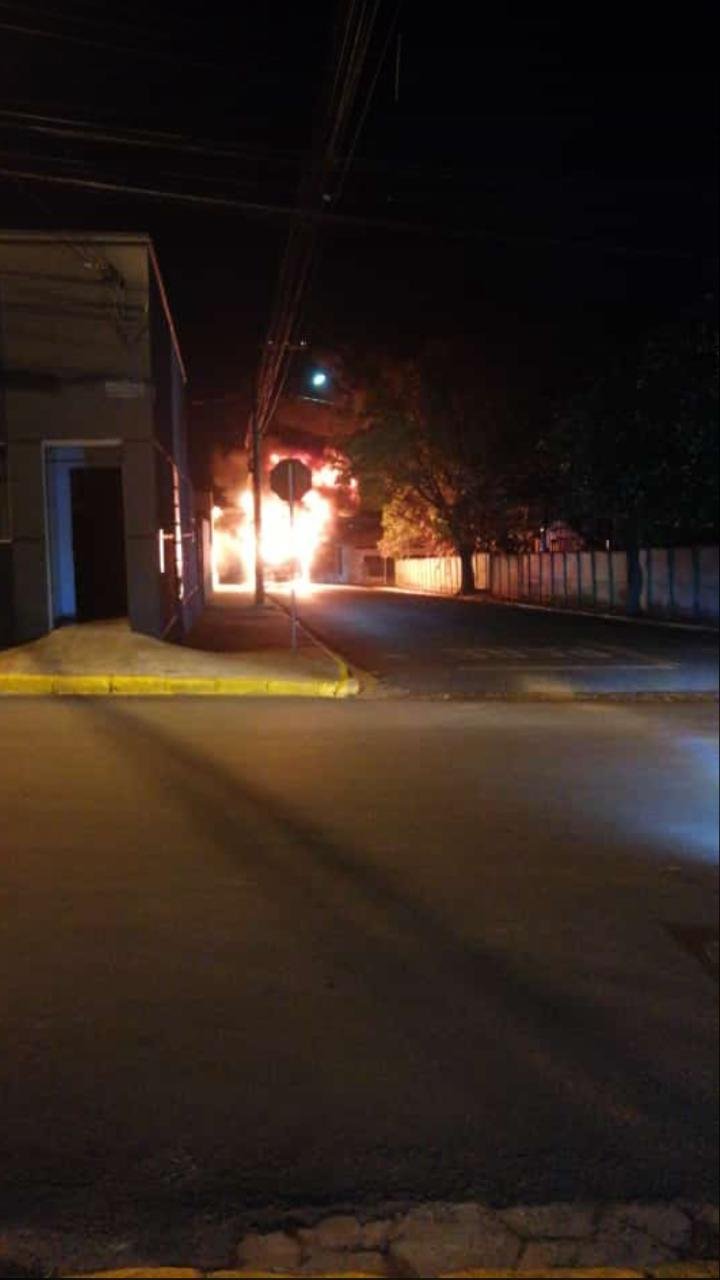 Um ônibus ficou completamente destruído após incêndio ocorrido em Itatinga na noite desta sexta-feira, 9 de julho. O fato ocorreu na rua Renato Lopes de Oliveira, no Centro.