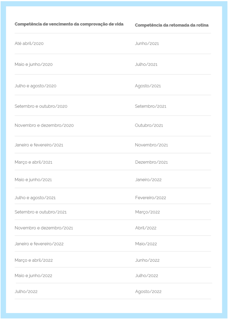 O Instituto Nacional do Seguro Social (INSS) prorrogou, por meio da Portaria nº 1.321/2021, publicada no Diário Oficial da União, o calendário de prova de vida até agosto de 2022. Os prazos para 2021 seguem os mesmos.