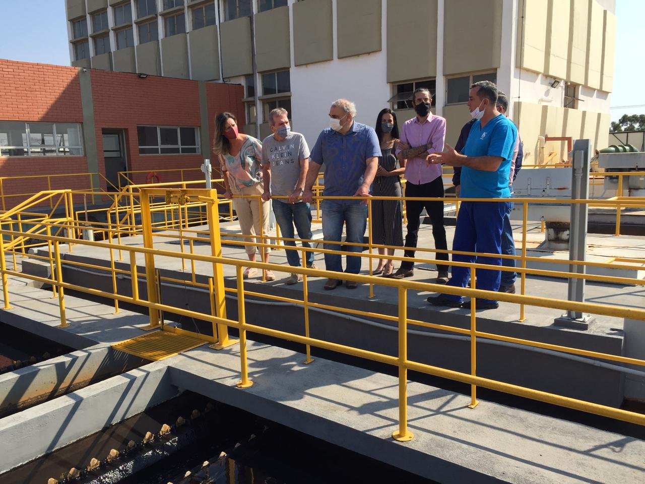 A programação teve início pela Estação de Tratamento de Água, onde foram recepcionados pelo gerente da Divisão Botucatu, Sandro Henrique Branbilla Ramos, ocasião em puderam conhecer o processo de tratamento (floculação, decantação e filtração), como também tomaram conhecimento do volume da água tratada na ordem de 530 litros por segundo.