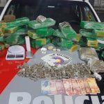Dentro do imóvel os policiais encontraram 14 tijolos de maconha escondidos embaixo do tanque de lavar roupas, bem como mais 14 tijolos escondidos na parte de baixo da cama e uma mochila com mais 2 quilos da droga. Também foram encontradas balanças de precisão, além de porções menores de crack e cocaína embaladas para a venda.