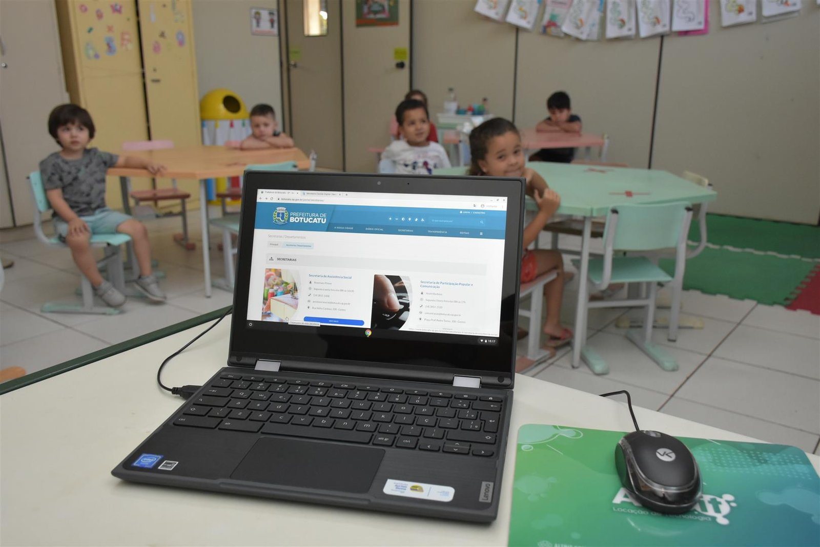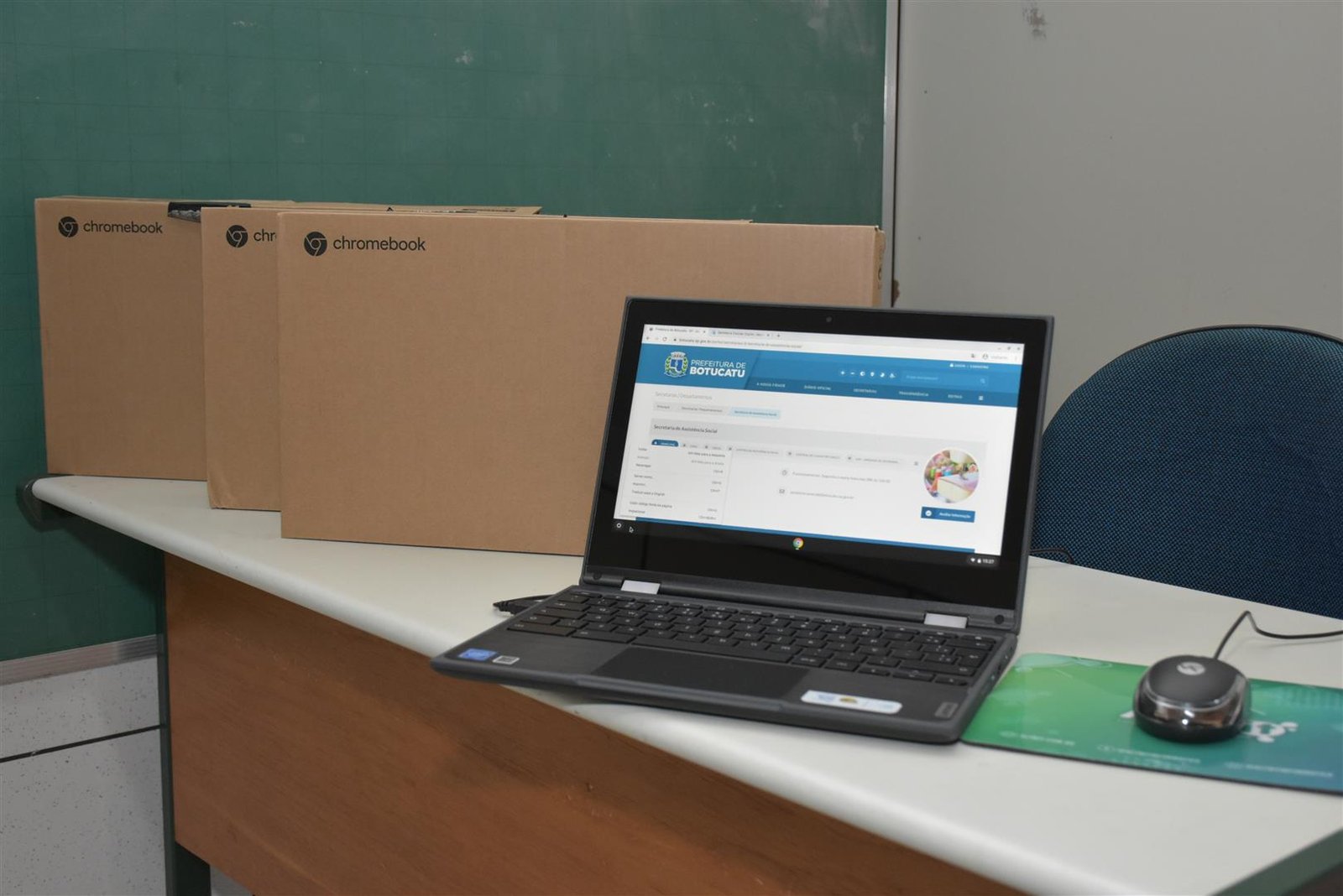 A Secretaria Municipal de Educação entregou em todas as unidades escolares, desde a Educação Infantil, passando pelas escolas de Ensino Fundamental, EJA e Educação Especial, cerca de 1 mil chromebooks, para professores e atendentes de Creche.