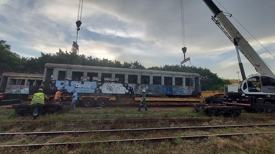 Vagões abandonados são retirados da linha férrea de Botucatu e integrarão projeto de preservação ferroviária