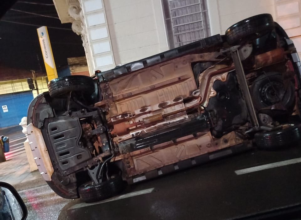 Um carro tombou na noite desta quinta-feira, 9 de setembro, na Avenida Santana, Centro de Botucatu.