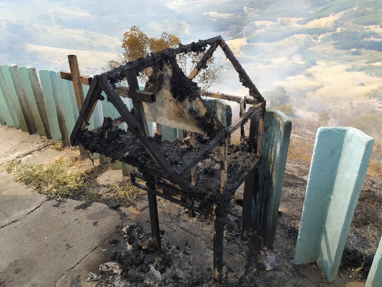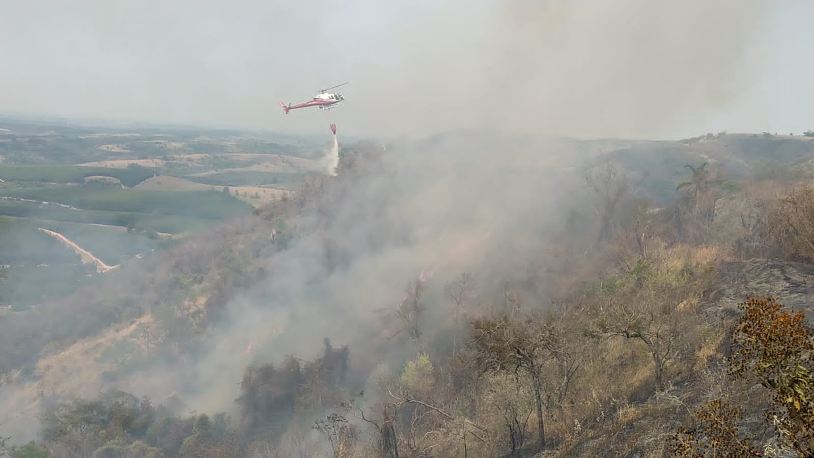 Incêndio atinge área próxima a Capela de São Cristóvão; bombeiros precisaram de auxílio de helicópteros para conter as chamas