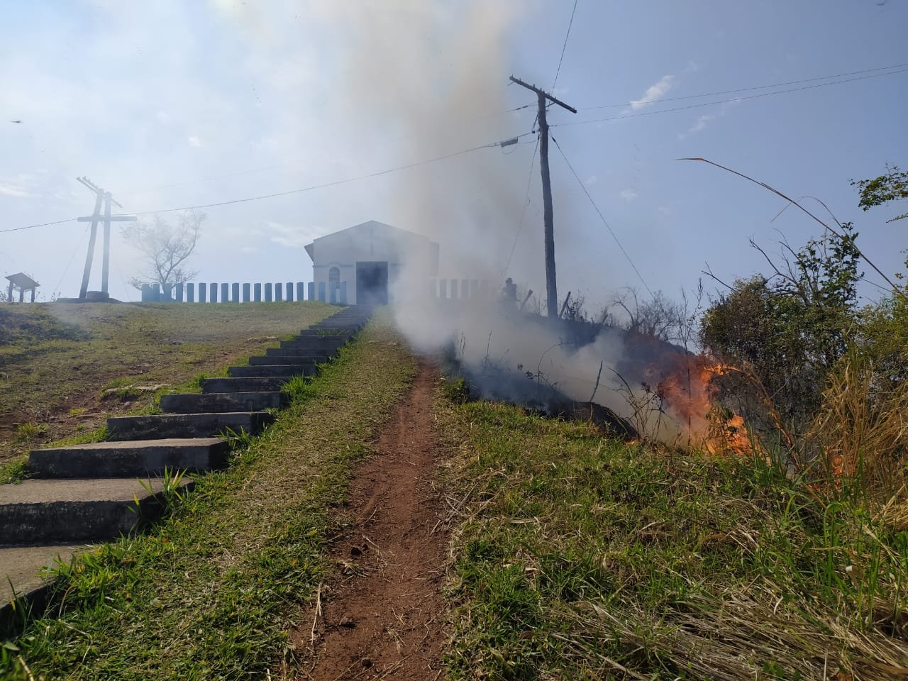 Segundo o Corpo de Bombeiros, as chamas teriam se iniciado a partir de um suporte colocado na área externa para o acendimento de velas. Havia também outros recipientes com materiais do tipo atrás da Capela e bem próximos da mata, que está com a vegetação seca devido ao período de estiagem.