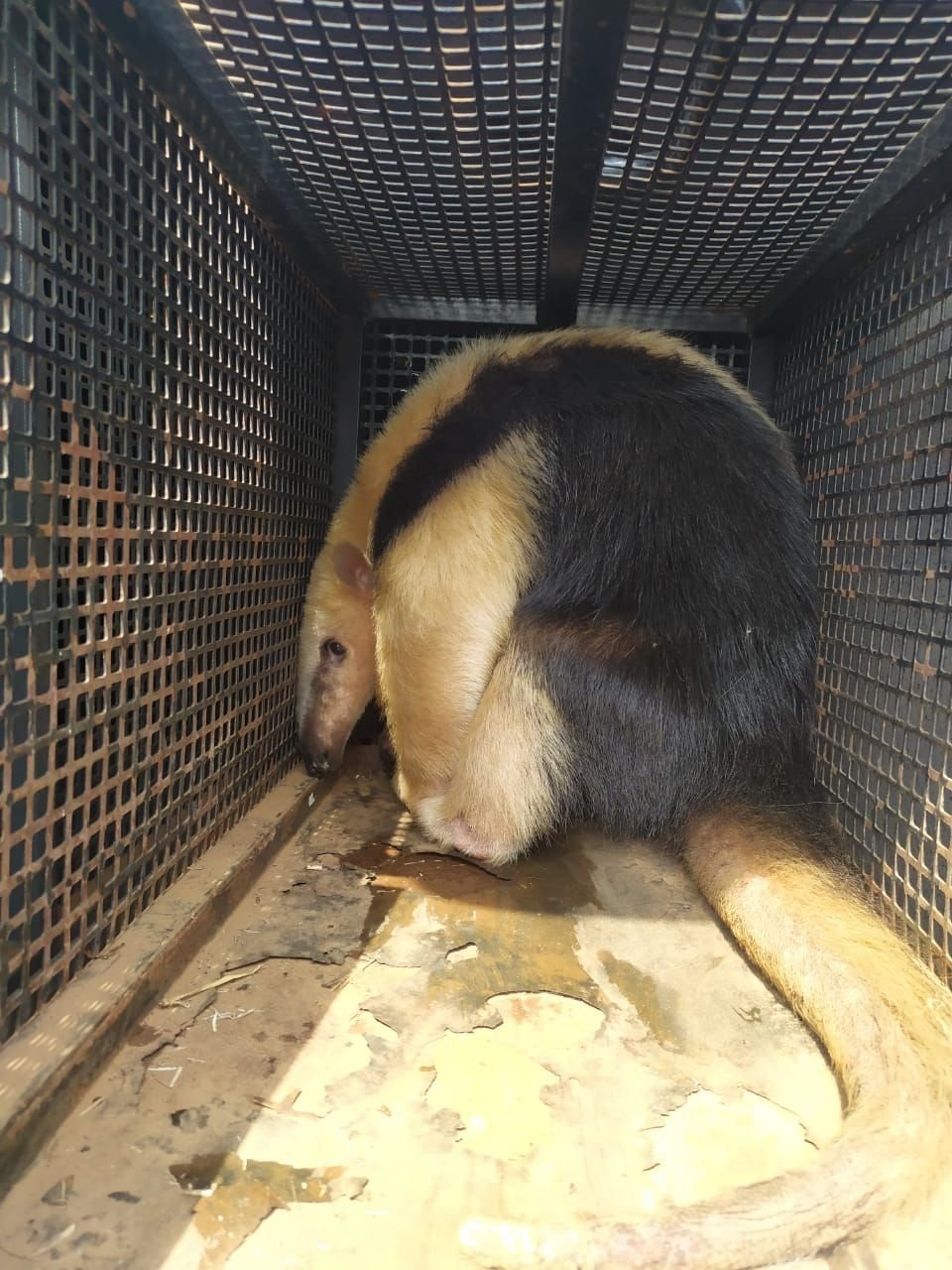 Tamanduá é resgatado ferido e intoxicado após fugir de incêndios na cuesta de Botucatu