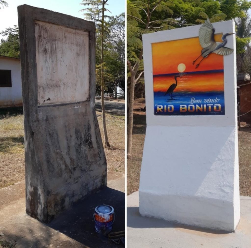Moradores revitalizam totem no acesso ao Rio Bonito