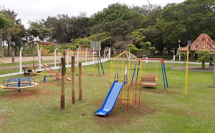 Voltado para crianças de até 12 anos, o playground conta com dois tipos de balanço, escorregador, gira-gira e gangorra.