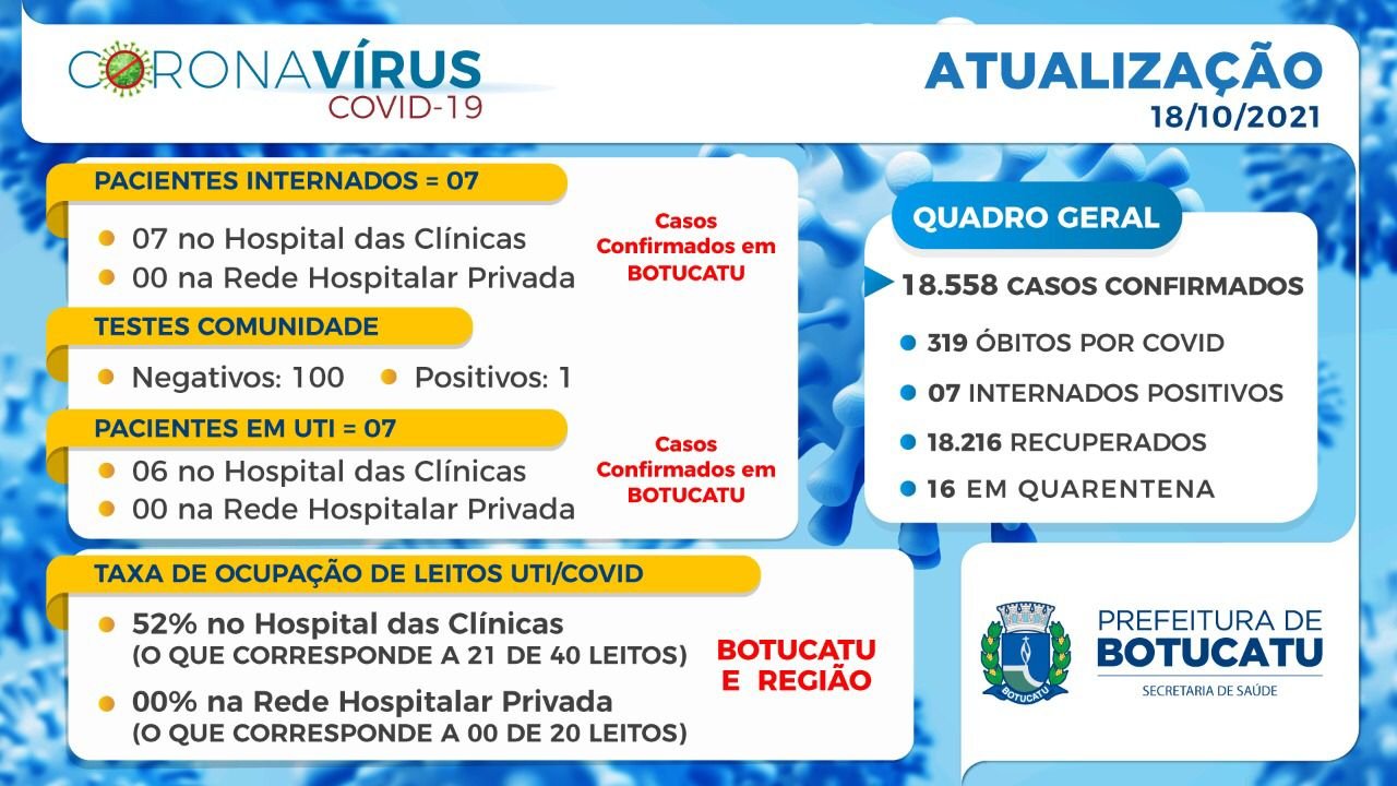 Mais uma morte por Covid-19 foi registrada nesta segunda-feira, 18 de outubro, pela Secretaria Municipal da Sáude, após dez dias.