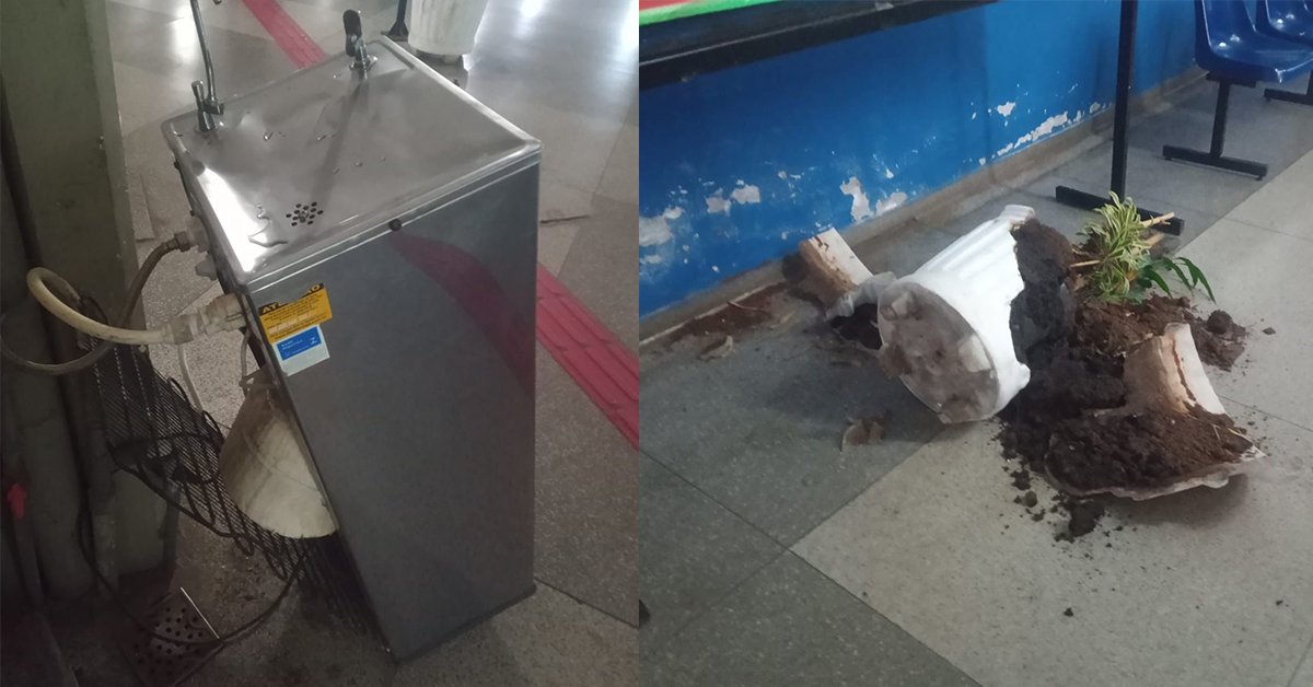 Ocorrência atendida pela Guarda Civil Municipal (GCM) após o acusado ter quebrado um bebedouro e vasos de plantas. Abordado, confessou ter bebido e dormido nos bancos de espera do terminal, o que fez com que perdesse o ônibus. Irritado, quebrou os objetos.