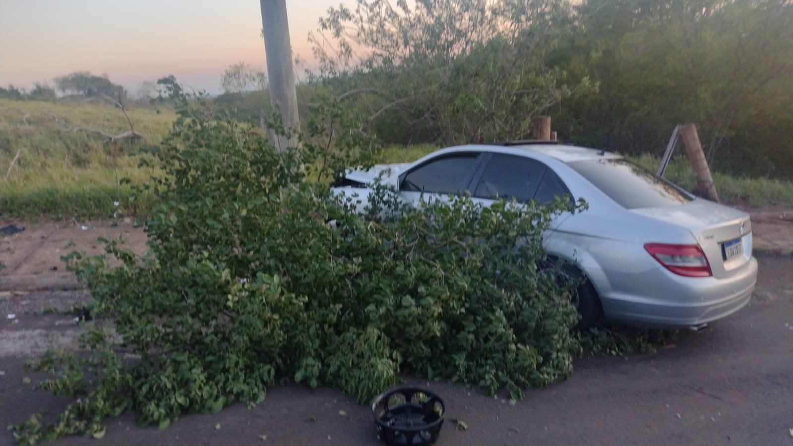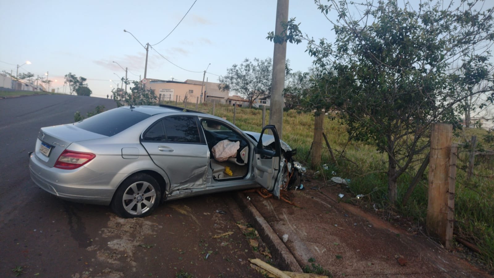 Botucatu: motorista perde controle e bate Mercedes contra poste