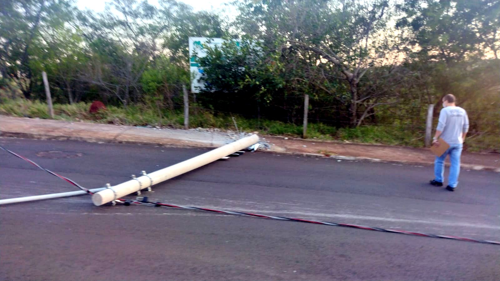 Devido a colisão, o poste caiu e o fornecimento de energia elétrica ficou interrompido durante algumas horas na região. A CPFL esteve no local para reparos.