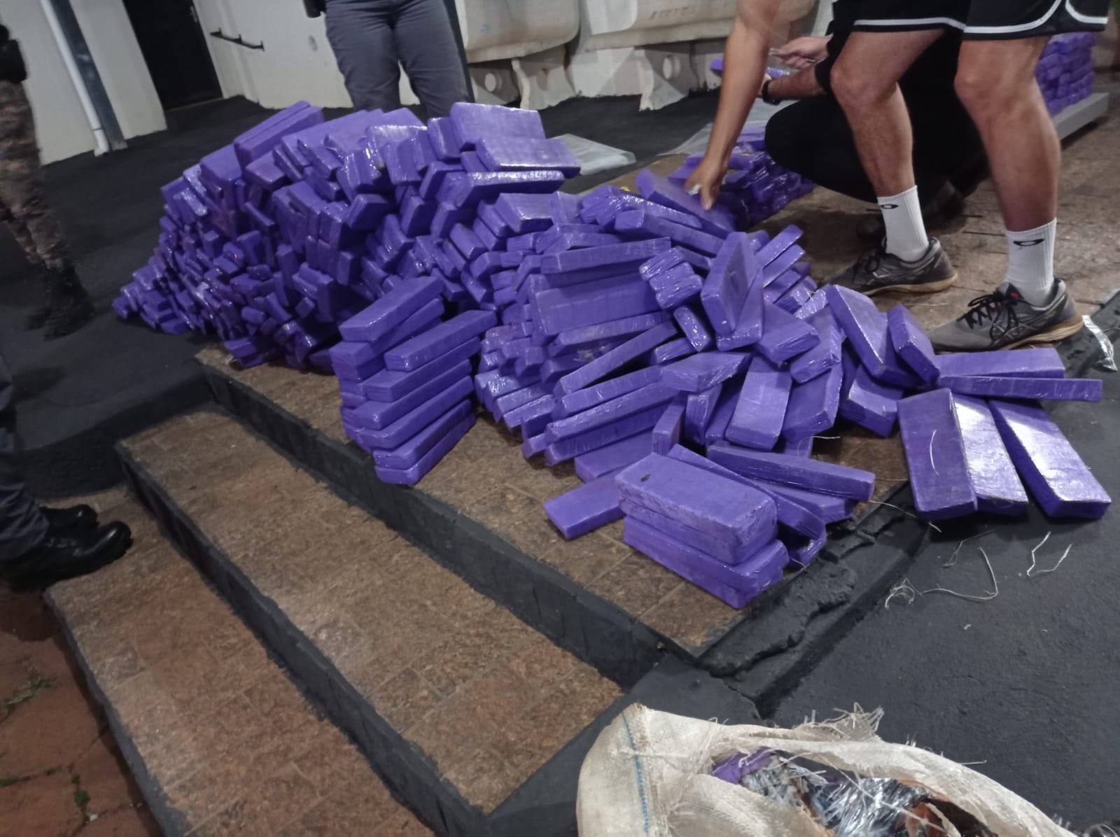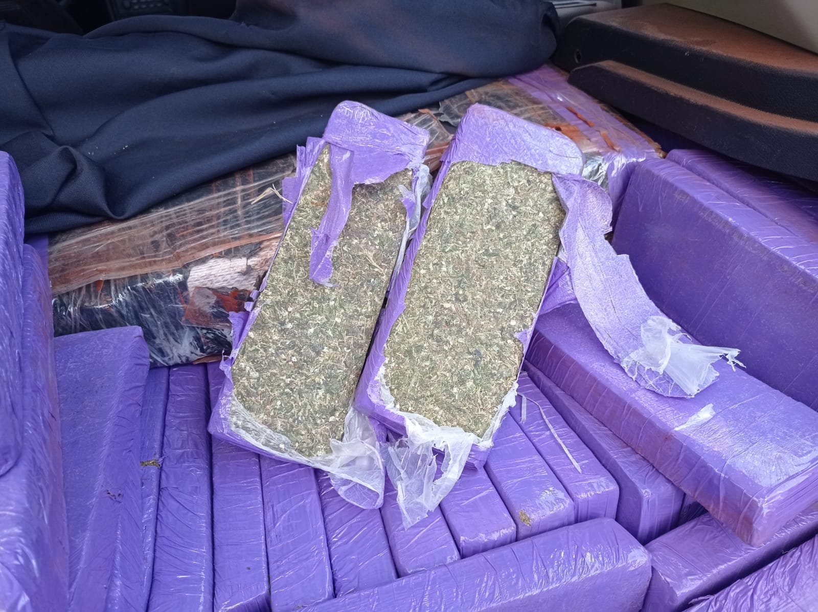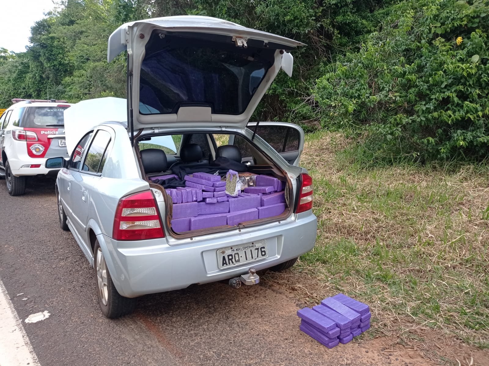 Foram apreendidos 471 quilos de maconha em 652 tijolos de maconha que estavam escondidos no porta-malas e em outras partes do veículo.