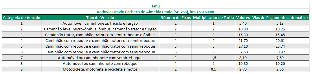As praças de pedágio no trecho sob concessão da Arteris ViaPaulista terão suas tarifas reajustadas a partir da zero hora desta terça-feira (23). A decisão foi publicada no Diário Oficial de 20 de novembro e autoriza a revisão dos valores em 10,246395%, com base na evolução do Índice de Preços ao Consumidor Amplo (IPCA).