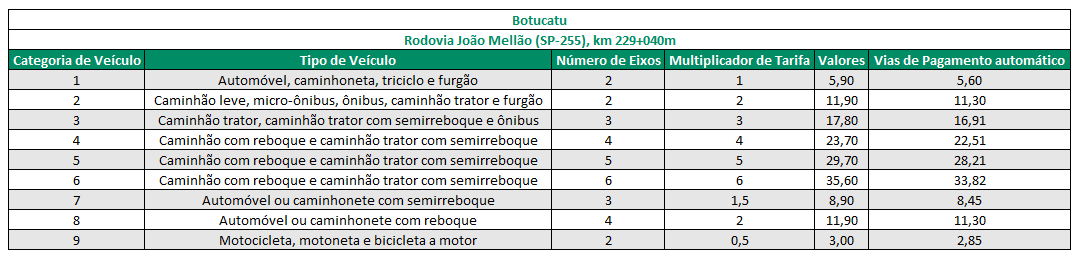 Pedágios em Botucatu e Jau terão reajustes de tarifas