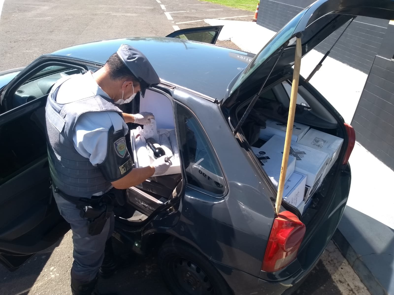 Por mais de três quilômetros as viaturas da PMR perseguiram o suspeito, que passou entre os veículos que trafegava, e também pelo acostamento. Cercado, o motorista parou o Gol e teve averiguação pessoal, não sendo encontrado nada irregular. No entanto, na parte traseira do carro estavam 52 caixas de vinho e ouras bebidas importadas (totalizando 287 garrafas), em sua maioria da Argentina, sem notas fiscais ou mesmo comprovante de compra das mesmas.