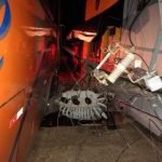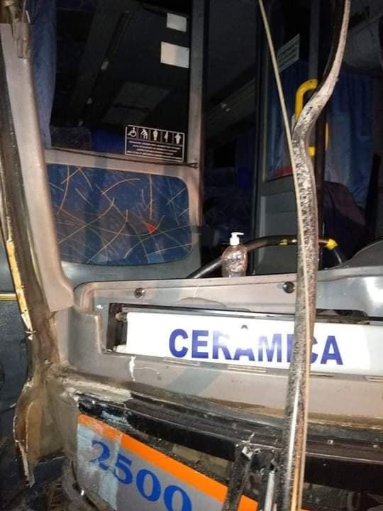 Choque destruiu parte frontal do ônibus. Não houve feridos
