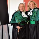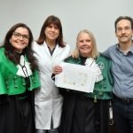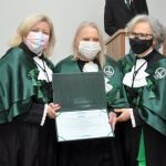 O Departamento de Pediatria preparou um vídeo com depoimentos emocionantes de colegas, familiares e pacientes atendidos pela Professora Giesela. Após a leitura do termo de outorga pela diretora técnica acadêmica, Silvia Sacramento Araujo Vieira, as novas eméritas assinaram o documento e depois receberam o capelo e o título das mãos da diretora e da vice-diretora da FMB.