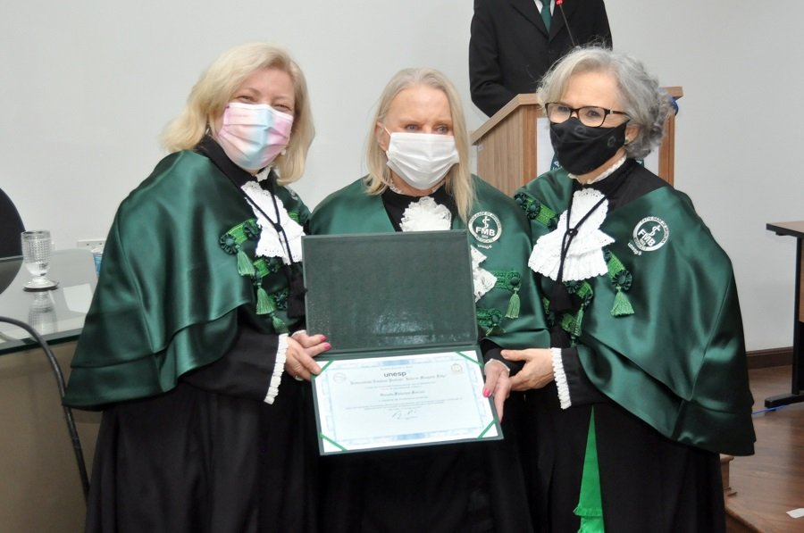 Em cerimônia realizada na Sala da Congregação, na tarde de quarta-feira (24), a Faculdade de Medicina de Botucatu (FMB/UNESP) outorgou oficialmente à professora Giesela Fleischer Ferrari o título de Professora Emérita. Essa honraria é conferida aos docentes já aposentados, que atingiram alto grau de projeção no exercício de sua atividade acadêmica.