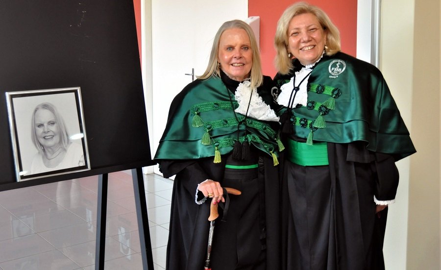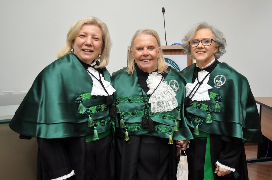 O Departamento de Pediatria preparou um vídeo com depoimentos emocionantes de colegas, familiares e pacientes atendidos pela Professora Giesela. Após a leitura do termo de outorga pela diretora técnica acadêmica, Silvia Sacramento Araujo Vieira, as novas eméritas assinaram o documento e depois receberam o capelo e o título das mãos da diretora e da vice-diretora da FMB.