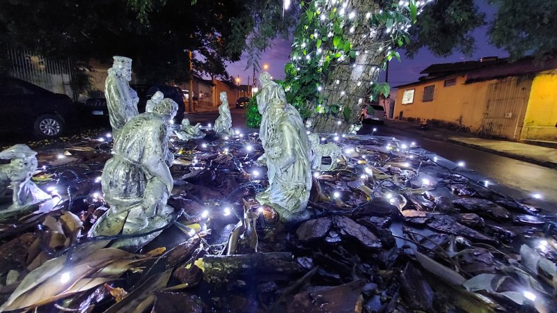 Luzes, Papai-Noel e presépio são atrações da decoração natalina em praça no Jardim Paraíso
