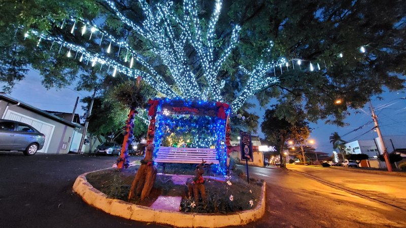 A decoração natalina de uma praça na Rua Rafael Laurindo, no Jardim Paraíso, tem chamado a atenção de visitantes durante às festividades deste ano em Botucatu.